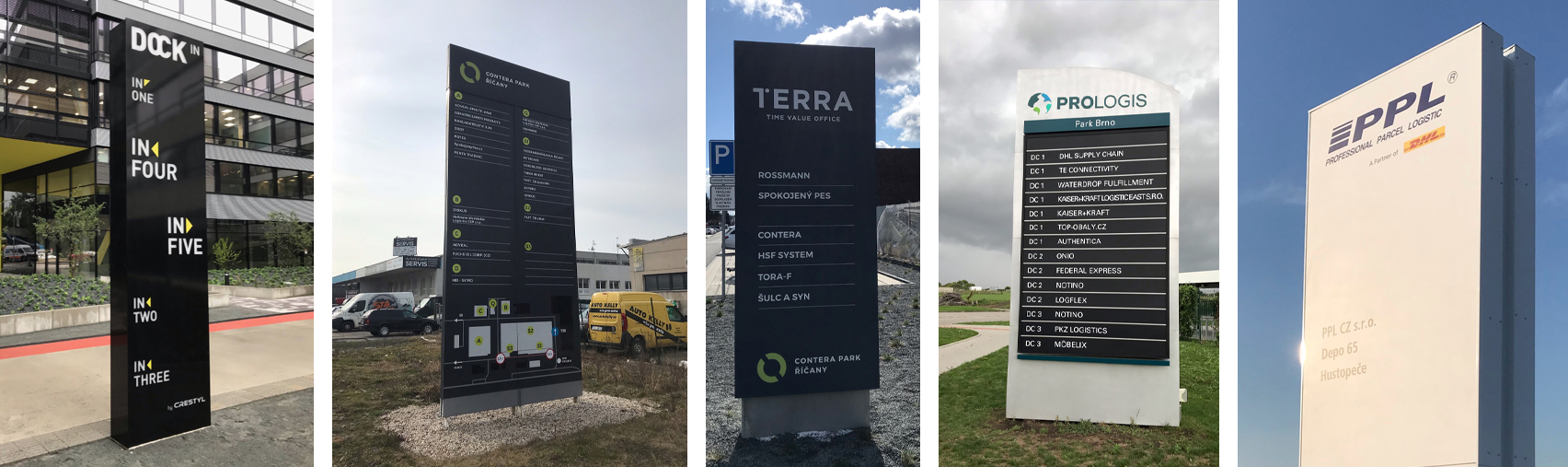 Mohou být všech možných tvarů a velikostí. Nejčastěji se používá u čerpacích stanic, před areálem firmy, průmyslových zón a center jako navigační prostředek.