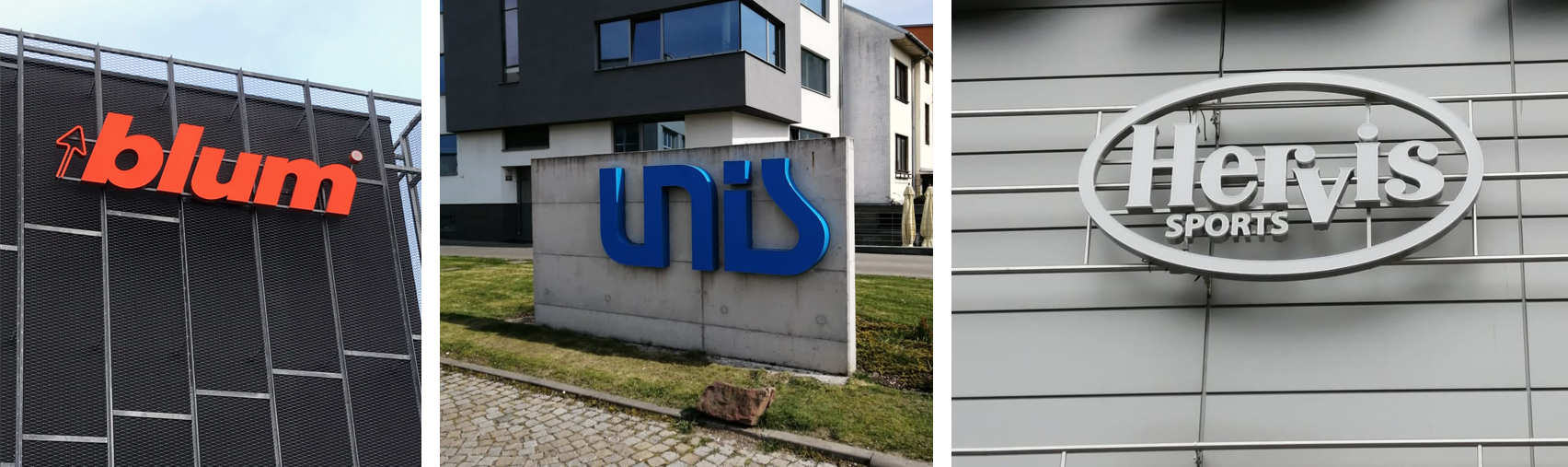 Jedná se o velmi populární a vkusné provedení reklamy v závislosti na podobě daného loga. Korpusy jednotlivých znaku jsou vyrobeny z materiálů dle případných požadavků klienta na celkový vzhled hliník, nerezový plech (brus popř. lesk), plast či dibond. V případě požadavku na světelné provedení je čelo vyhotoveno z opálového plexi s polepem translucentní fólií popř. probarveným plexi.
